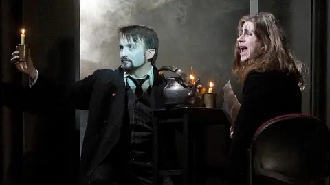 Зрелищный, динамичный, провокационный спектакль, поставленный в фирменном стиле Юрия Бутусова. Мрачная захватывающая красота с лёгким привкусом ночного кошмара. Драма и абсурд, романтика и сарказм, психологическая глубина и ювелирно выстроенная композиция.